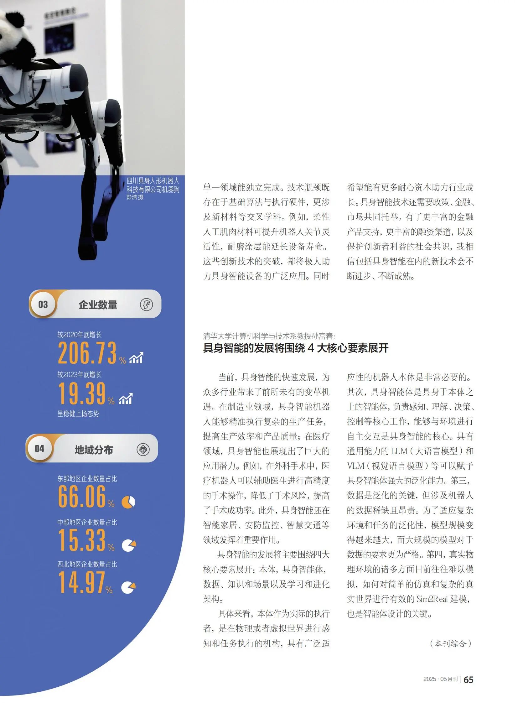 發(fā)展具身智能是系統(tǒng)工程,絕非單一領(lǐng)域能獨(dú)立完成。技術(shù)瓶頸既存在于基礎(chǔ)算法與執(zhí)行硬件,更涉及新材料等交叉學(xué)科。例如,柔性人工肌肉材料可提升機(jī)器人關(guān)節(jié)靈活性,耐磨涂層能延長設(shè)備壽命。這些創(chuàng)新技術(shù)的突破,都將極大助力具身智能設(shè)備的廣泛應(yīng)用。同時希望能有更多耐心資本助力行業(yè)成長。具身智能技術(shù)還需要政策、金融、市場共同托舉。有了更豐富的金融產(chǎn)品支持,更豐富的融資渠道,以及保護(hù)創(chuàng)新者利益的社會共識,我相信包括具身智能在內(nèi)的新技術(shù)會不斷進(jìn)步、不斷成熟。