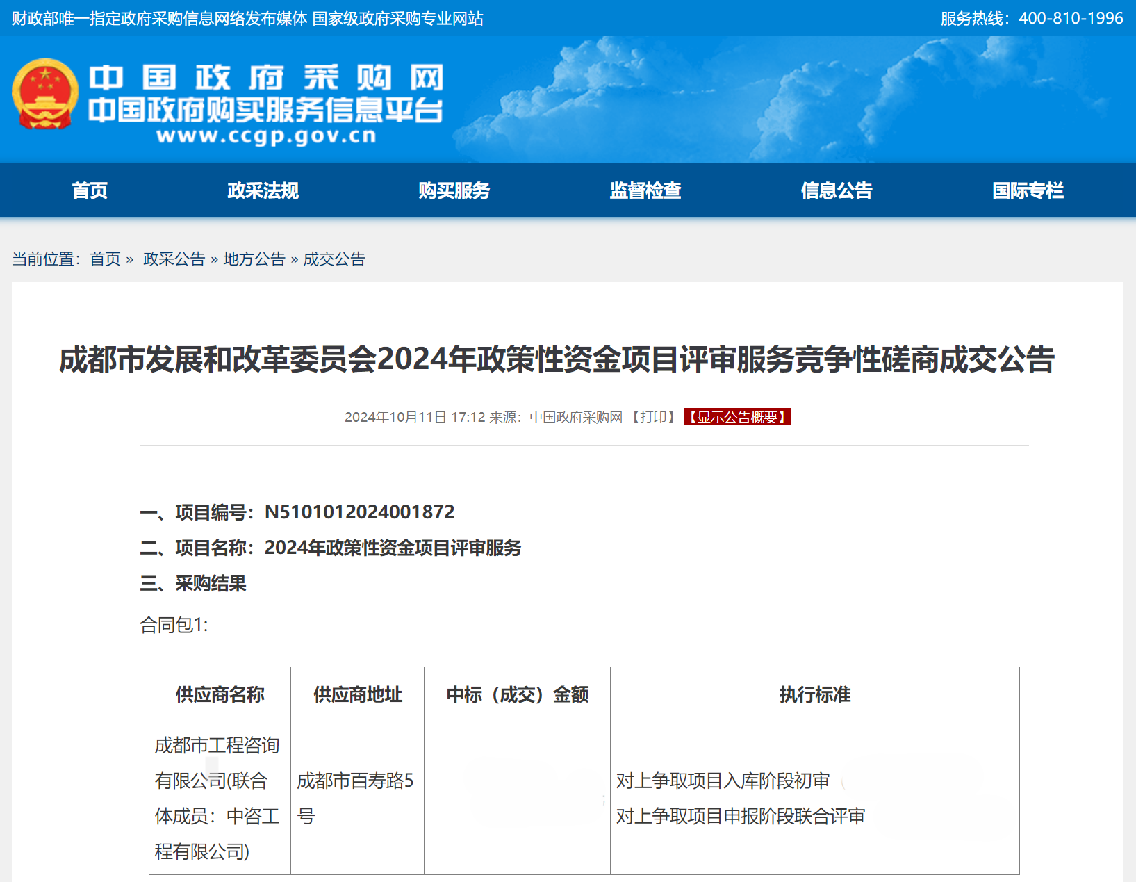 近期,成都工程咨詢有限公司和中咨工程有限公司聯(lián)合中標(biāo)成都市發(fā)展和改革委員會2024年政策性資金項(xiàng)目評審服務(wù)。