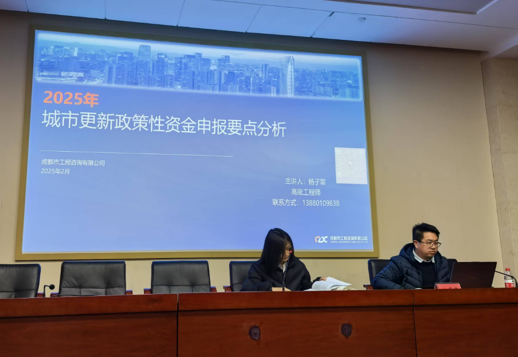 為落實(shí)國家和省市有關(guān)實(shí)施城市更新行動(dòng)的工作部署,準(zhǔn)確把握城市更新領(lǐng)域超長期特別國債、地方政府專項(xiàng)債、中央預(yù)算內(nèi)資金申報(bào)要求,圍繞城市更新八大任務(wù)做好項(xiàng)目包裝、儲(chǔ)備和申報(bào)工作,最大限度承接國家政策紅利,助力成都市經(jīng)濟(jì)社會(huì)高質(zhì)量發(fā)展,2月13日,成咨公司受成都市住建局邀請開展2025年城市更新政策性資金申報(bào)專題培訓(xùn),市住建局、各區(qū)(市)縣住建局和城市更新工作具體實(shí)施單位相關(guān)工作人員共計(jì)100余人參加本次培訓(xùn),本次培訓(xùn)會(huì)得到了參會(huì)單位的高度認(rèn)可。公司黨支部書記、執(zhí)行董事、總經(jīng)理陳崎虎及公司城市有機(jī)更新項(xiàng)目組參與培訓(xùn)。