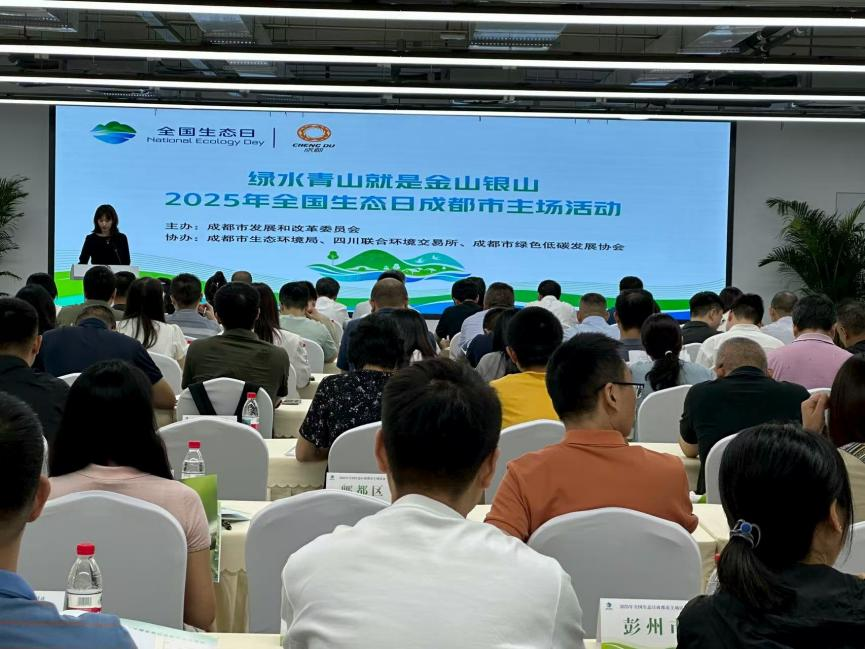 2025年8月15日,以“綠水青山就是金山銀山”為主題的全國生態(tài)日成都市主場活動在市民營經(jīng)濟發(fā)展促進中心成功舉辦。本次活動由成都市發(fā)展改革委主辦,成都市生態(tài)環(huán)境局、四川聯(lián)合環(huán)境交易所、成都市綠色低碳發(fā)展協(xié)會協(xié)辦。成都市發(fā)展改革委、市生態(tài)環(huán)境局等市級相關(guān)部門、區(qū)(市)縣、行業(yè)協(xié)會代表等80余人參會。