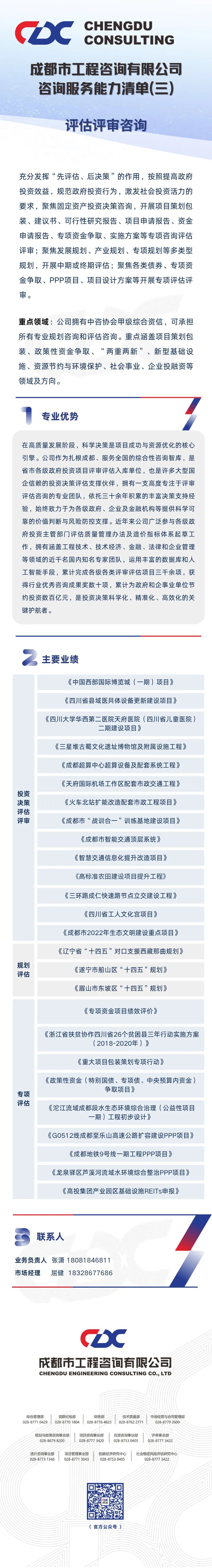 近日,成都市工程咨詢有限公司成功入選成都經(jīng)開(kāi)國(guó)投集團(tuán)有限公司“2025年度-2028年度中介服務(wù)機(jī)構(gòu)庫(kù)一項(xiàng)目建議書(shū)(可行性研究報(bào)告)編制(不含市場(chǎng)經(jīng)營(yíng)類項(xiàng)目建議書(shū)、可研)”咨詢機(jī)構(gòu)名單,將在新一輪服務(wù)周期中為區(qū)域高質(zhì)量發(fā)展提供優(yōu)質(zhì)決策支撐。作為成都龍泉驛區(qū)(成都經(jīng)開(kāi)區(qū))城市建設(shè)和產(chǎn)業(yè)發(fā)展的核心平臺(tái)與主力軍,經(jīng)開(kāi)國(guó)投集團(tuán)深度融入先進(jìn)制造業(yè)高地和現(xiàn)代化品質(zhì)城區(qū)建設(shè)大局,在完善區(qū)...