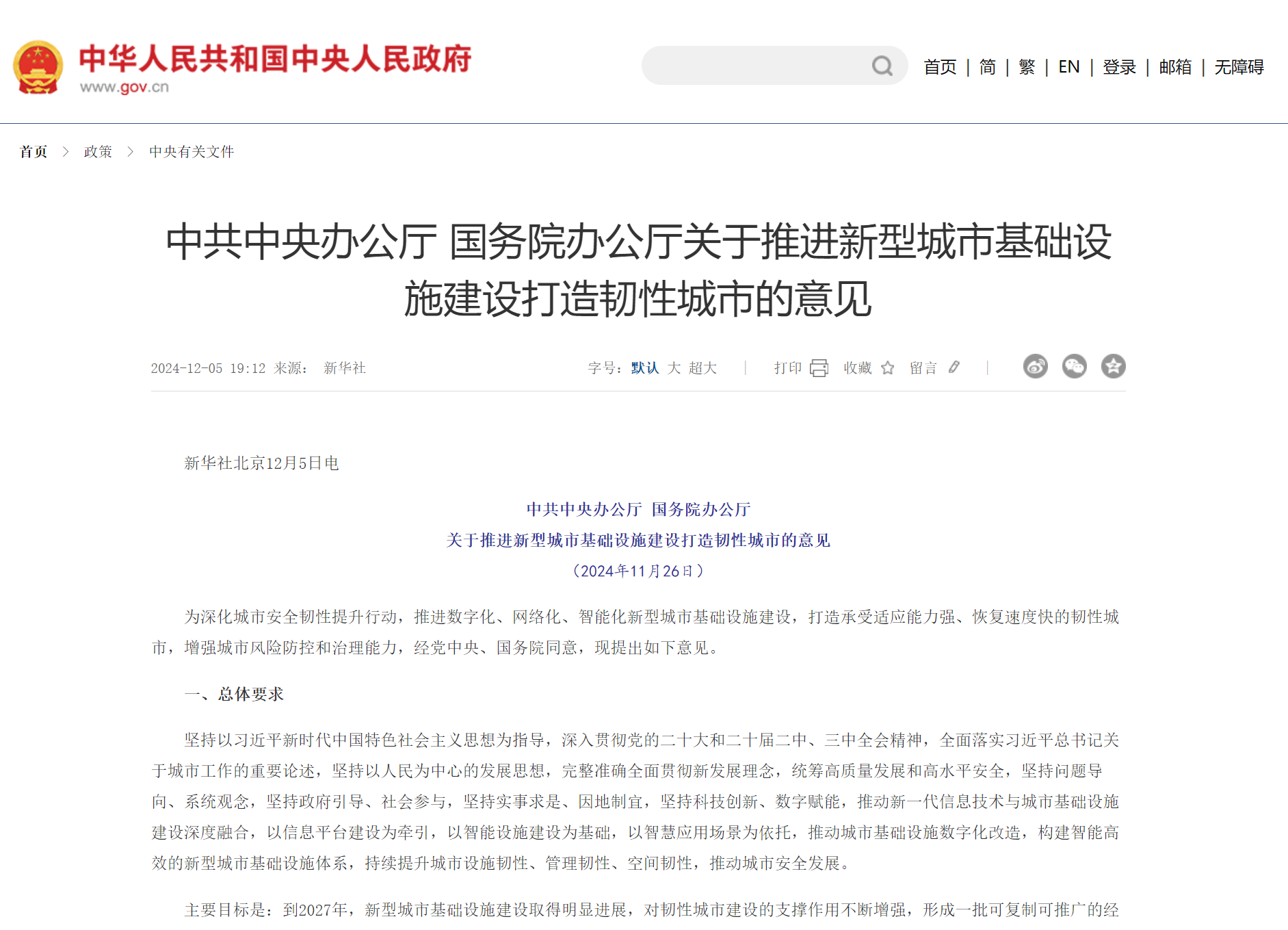 為深化城市安全韌性提升行動,推進數(shù)字化、網(wǎng)絡(luò)化、智能化新型城市基礎(chǔ)設(shè)施建設(shè),打造承受適應(yīng)能力強、恢復(fù)速度快的韌性城市,增強城市風險防控和治理能力,經(jīng)黨中央、國務(wù)院同意,現(xiàn)提出如下意見。