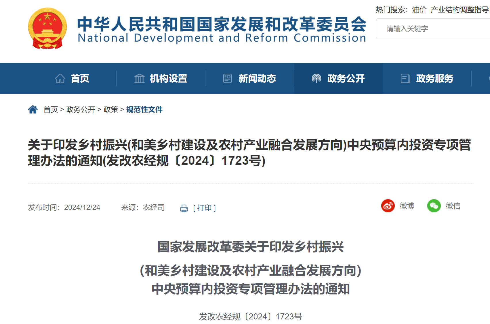 為貫徹落實黨中央、國務(wù)院決策部署,進一步規(guī)范鄉(xiāng)村振興中央預(yù)算內(nèi)投資專項管理,根據(jù)《政府投資條例》和中央預(yù)算內(nèi)投資管理的相關(guān)規(guī)定,我們制定了《鄉(xiāng)村振興(和美鄉(xiāng)村建設(shè)及農(nóng)村產(chǎn)業(yè)融合發(fā)展方向)中央預(yù)算內(nèi)投資專項管理辦法》。